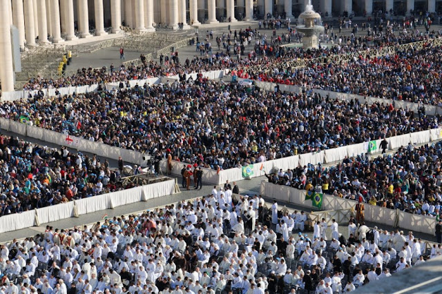 Vindos de diferentes partes do Brasil e do mundo, os fiéis de caravana investiram cerca de R$ 12 mil em passagens e hospedagem para ver de perto a canonização.