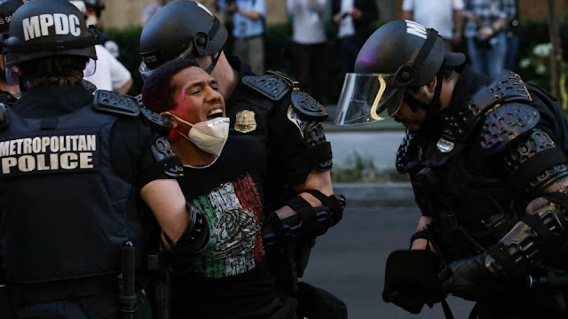 Mais de 4.400 pessoas foram presas em todo o país desde quinta-feira, segundo a agência de notícias AP, sob acusações de roubo e descumprimento do toque de recolher.Nesta segunda, a prefeita de Washington decretou o recolhimento mais cedo, às 19h, acrescentando que a cidade está se preparando "para vários dias de manifestações."Parte dos policiais na capital e no restante do país tem agido também contra jornalistas, atingidos por balas de borracha e spray de pimenta enquanto estão trabalhando e devidamente identificados.