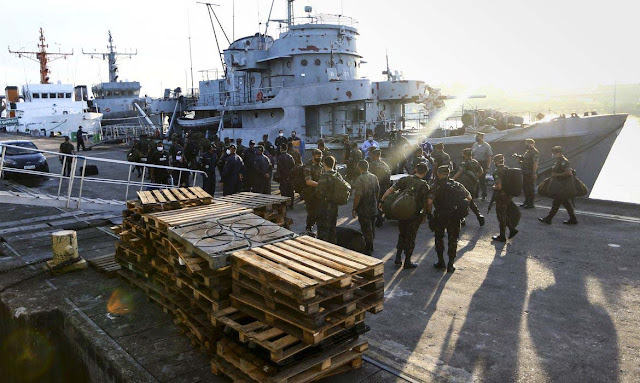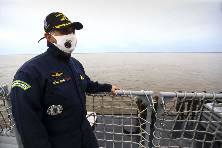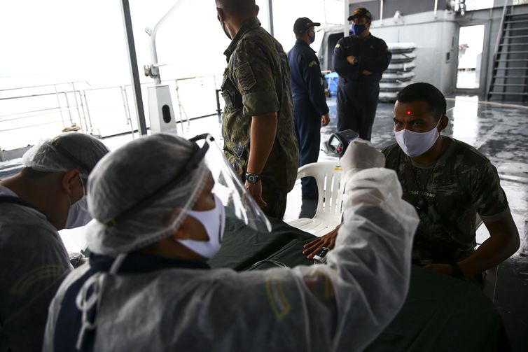 | Militares passam por avaliação de saúde e prevenção contra a Covid19 no Navio Auxiliar Pará. - Marcelo Camargo/Agência Brasil |