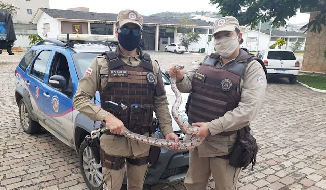 Policiais militares resgataram uma cobra jiboia na manhã deste sábado (20), por volta das 10h30, na rodovia BR-324, no trecho urbano em frente ao aeroporto de Jacobina. O animal estava escondido sob o capô de um caminhão.