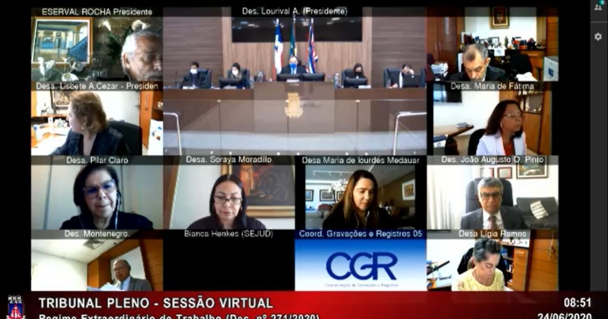 O Tribunal de Justiça da Bahia (TJ-BA) retomou as sessões plenárias nesta quarta-feira (24) e já entrou para história por ser a primeira por videoconferência. A última sessão foi realizada no dia 11 de março, pouco antes da adoção das medidas para conter a pandemia do novo coronavírus. A sessão, além de ser marcada por dúvidas técnicas com o sistema do Lifesize, teve um grande debate sobre a remessa ou não de uma sindicância contra o juiz Ronald de Souza Tavares para o Conselho Nacional de Justiça (CNJ).
