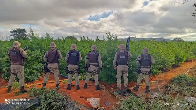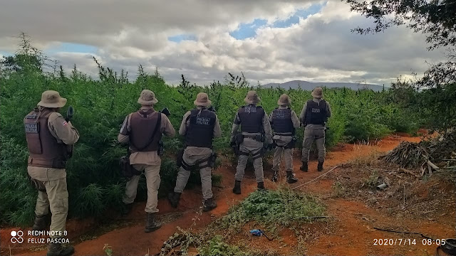 Durante a manhã desta terça-feira, 14, prepostos da 24ª CIPM, após receberem denúncias anônimas sobre um provável plantio de maconha numa propriedade rural no Povoado da Lagoa de Canabrava, pertencente ao município de Mirangaba, informaram de pronto ao Comando da Unidade e, imediatamente, foram autorizados e orientados pelo Major PM Flailton Oliveira, Comandante da 24ª CIPM, para com reforço policial da guarnição "Sertão Avançado", Pelotão de Emprego Tático Operacional (PETO) e outras tropas, utilizando as técnicas e táticas próprias do protocolo da corporação, empreendessem as diligências necessárias para o enfrentamento e captura dos transgressores da lei.