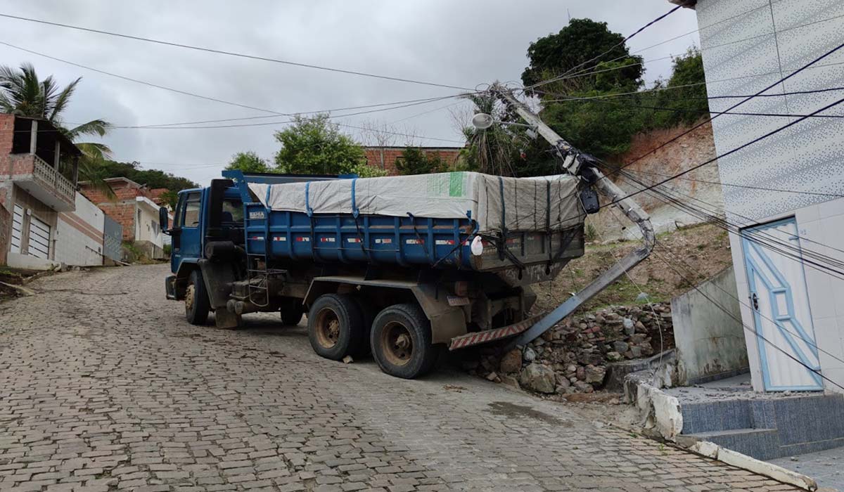 O condutor de uma caçamba perdeu o controle da direção do veículo, desceu uma ladeira e colidiu contra um poste da rede de energia elétrica na manhã desta sexta-feira (17), na Rua Antônio Manoel de Mesquita, na subida para o Monte Tabor, em Jacobina.
