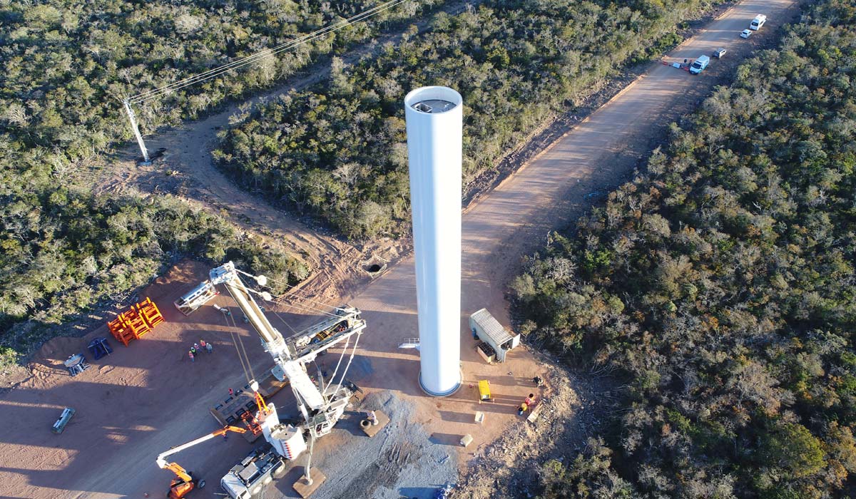 A ENGIE iniciou a montagem dos primeiros segmentos das torres metálicas dos aerogeradores nas obras do Conjunto Eólico Campo Largo – Fase 2. Essa etapa marca o início de uma nova fase do empreendimento, em que as torres de aço são encaixadas nas fundações de concreto.