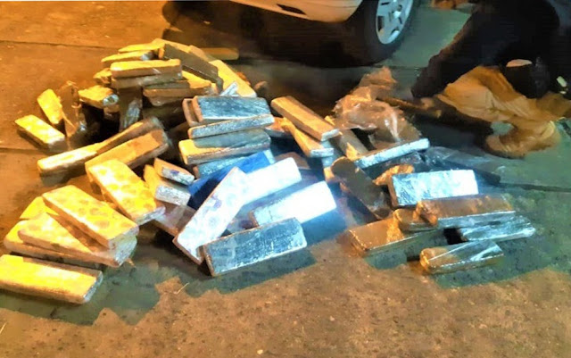 Os policiais então, desconfiados, iniciaram as buscas no veículo. A droga foi achada quando eles abriram o porta-malas. No total, foram encontrados 123 tijolos escondidos em três sacos.