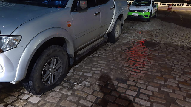 A caminhonete L200 teve um pneu cortado e possíveis danos na suspensão. O proprietário disse ao Jacobina Notícias que, nesta terça-feira, estará encaminhando o veículo para uma oficina, onde os danos serão avaliados. O automóvel teve o para-choque danificado.