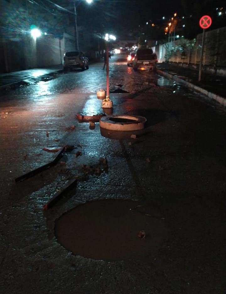 Conforme disse o proprietário de um dos veículos, uma obra está sendo executada pela Empresa Baiana de Águas e Saneamento (Embasa), e teria ficado sem uma sinalização adequada depois que os colaboradores finalizaram o serviço nesta segunda-feira. Por conta das chuvas que caíram durante todo o dia em Jacobina, o buraco, que aparenta ter mais de um metro de profundidade, estava cheio de água e acabou criando uma falsa visão de que se tratava apenas de uma poça.