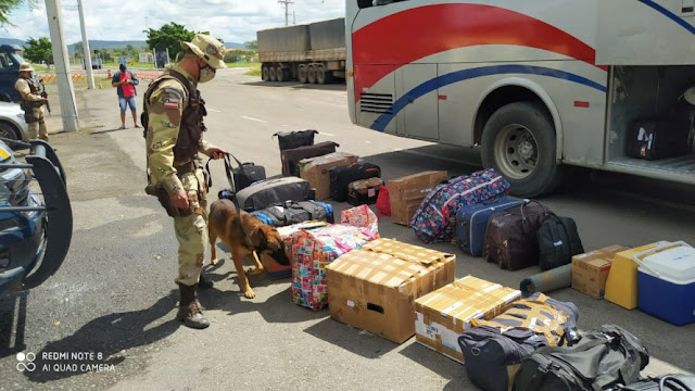 Os policiais pararam o veículo placa KOW 1A09 e iniciaram o processo de abordagem. Com apoio de um cão farejador da Cipe Chapada, cerca de 4 kg de crack foram localizados em uma bagagem.
