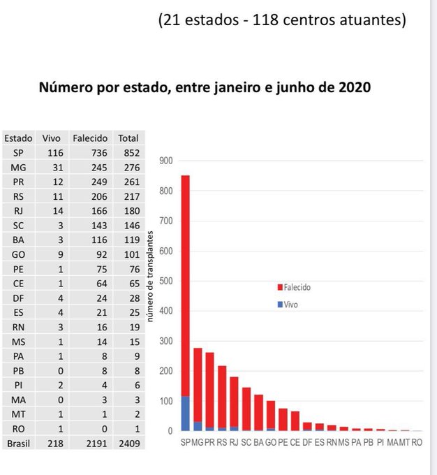 Durante todo o ano passado, foram registradas 133 doações de múltiplos órgãos e 518 doações de córneas. Foram feitos 49 transplantes de fígado, 206 de rim e 514 de córnea.