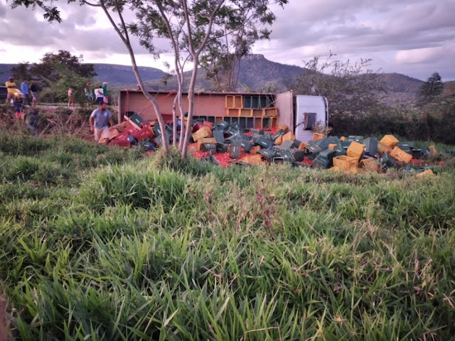 Uma moradora contou ao Jacobina Notícias que o caminhoneiro alegou ter faltado freio durante a descida. Na curva mais sinuosa da serra, ele não conseguiu manter o controle do caminhão, saiu da pista e tombou no acostamento. A carga de tomate que era transportada ficou espalhada na margem da rodovia.