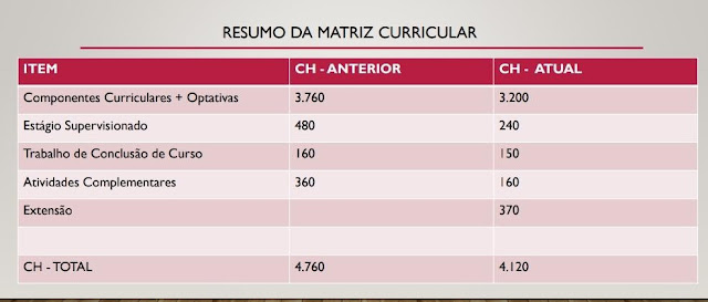 Por fim, e mais importante, ao ser disponibilizada a nova matriz curricular, alunos de todos os cursos fizeram um comparativo da grade curricular anterior com a nova grande e perceberam o quanto teriam de perdas em horas/aula ao longo do curso. Em resumo: