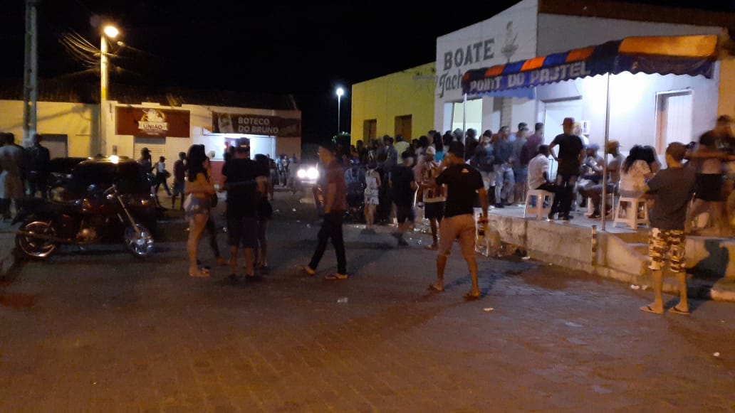 Nas imagens, que foram feitas da praça principal do distrito, aparecem grupos de pessoas conversando em frente à uma boate e um bar, enquanto que outras são flagradas sem máscara. O cidadão, que não quis se identificar, contou ainda que haviam policiais militares e guardas municipais nas proximidades, mas eles não puderam agir devido o efetivo insuficiente. Caatinga do Moura registra um óbito decorrente da Covid-19.