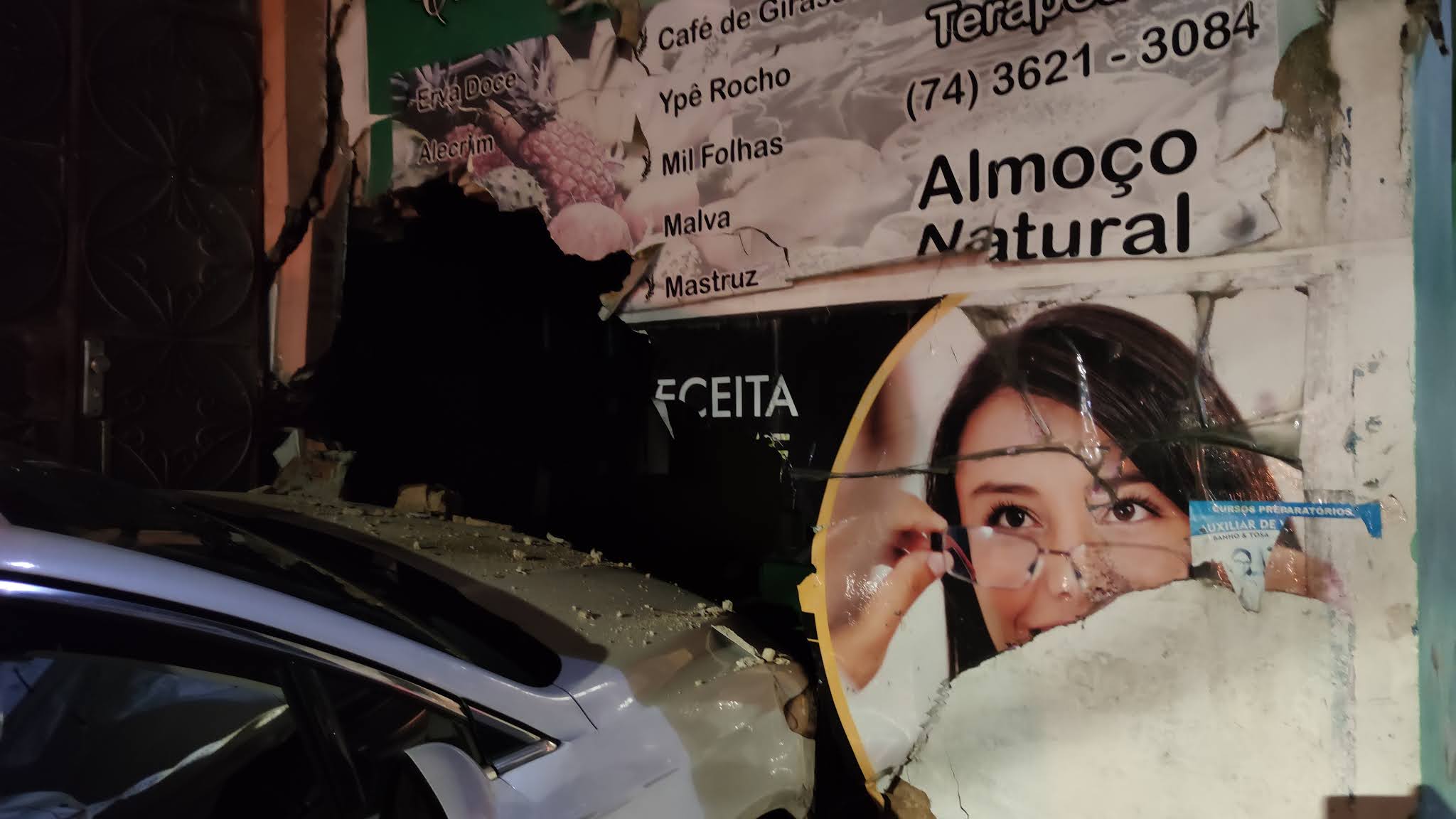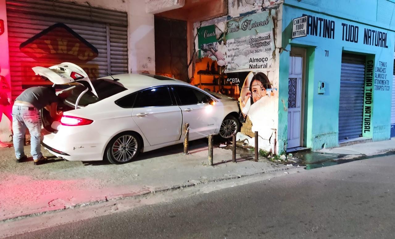 Na madrugada deste sábado, 17, o condutor de um veículo Fusion perdeu o controle da direção, vindo a colidir em uma parede de um comércio na Rua Antônio Muniz, centro de Jacobina.