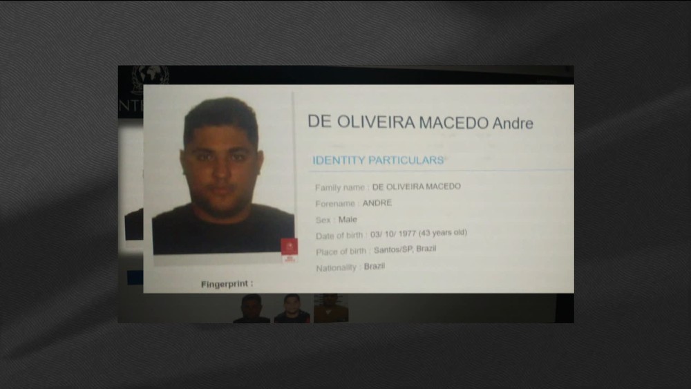 A Interpol incluiu três fotos e dados do traficante André Oliveira Macedo, o André do Rap, na lista internacional de procurados.