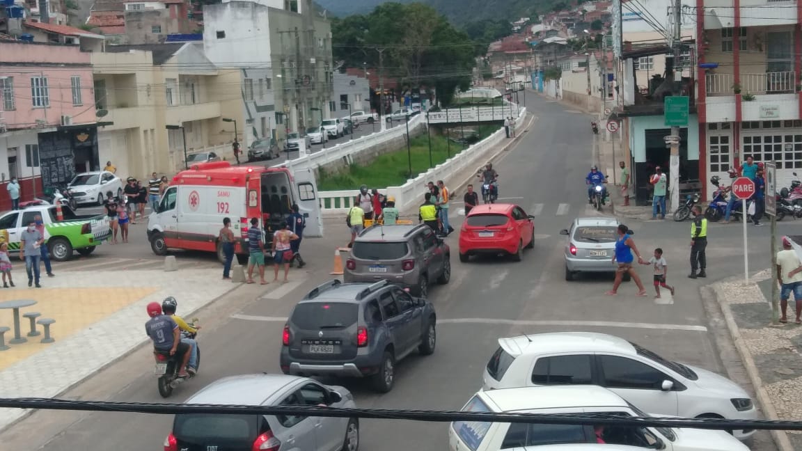 Por volta das 16h desta quarta-feira (28), um acidente envolvendo duas motocicletas deixou uma jovem ferida no cruzamento entre a Praça da Matriz, Rua Margem Rio do Ouro e a Rua Senador Pedro Lago, no centro de Jacobina.