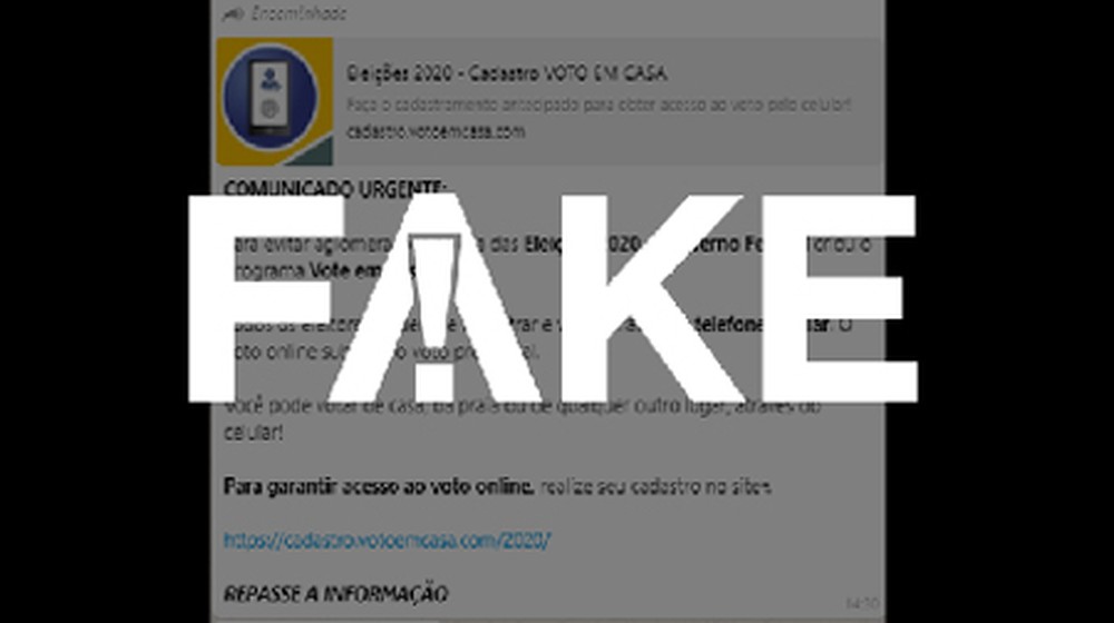 Outras mensagens falsas semelhantes têm circulado nos últimos dias e já foram verificadas pelo Fato ou Fake, como a que intima eleitores para um teste fictício de um sistema de voto pela internet.