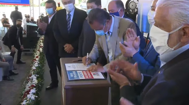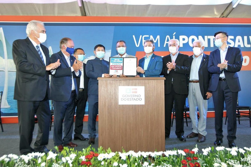 O documento foi assinado pelo Governo do Estado e o consórcio chinês que irá realizar a obra, formado pelas empresas China Communications Construction Company (CCCC Ltd), CCCC South America Regional Company (CCCCSA) e China Railway 20 Bureau Group Corporation (CR20), na área em frente ao prédio da Governadoria, no Centro Administrativo da Bahia (CAB).