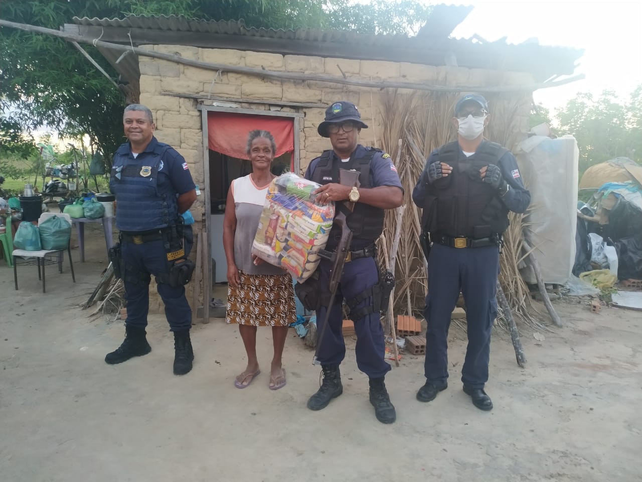 Uma equipe da Guarda Civil Municipal de Jacobina, que trabalha no distrito do Junco, esteve nesta terça-feira (24) na zona rural para entregar uma cesta básica a Simone, mulher que vive em vulnerabilidade social com mais dois filhos e pediu ajuda em vídeo ao apresentador Rodrigo Faro.