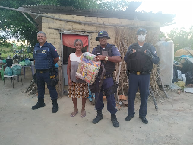 Jacobina: Guardas municipais entregam cesta básica a Simone, no distrito de Junco