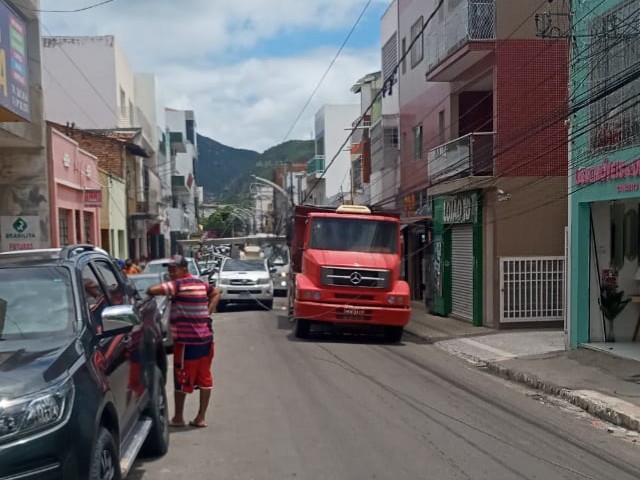 Caçamba atinge e derruba poste da rede elétrica no centro de Jacobina