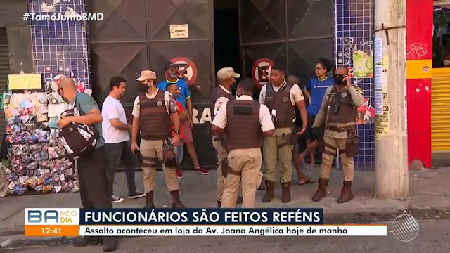 Homens armados invadiram e assaltaram uma grande loja localizada na Avenida Joana Angélica, em Salvador, na manhã desta segunda-feira (7). Testemunhas contaram que o grupo manteve funcionários reféns.
