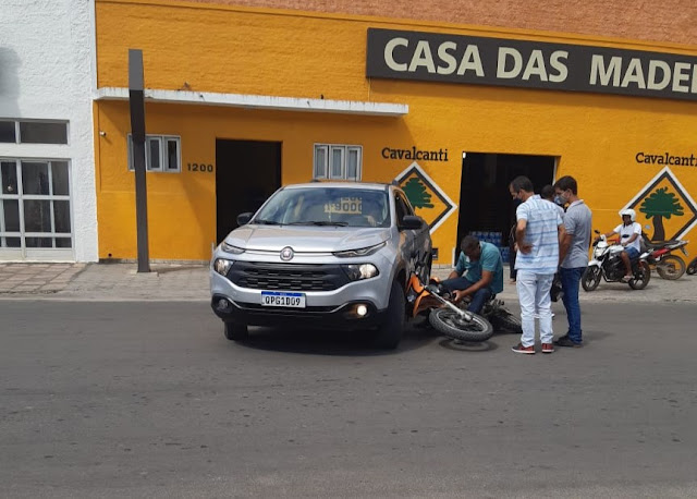 Motociclista fica ferido em colisão entre moto e carro no centro de Jacobina