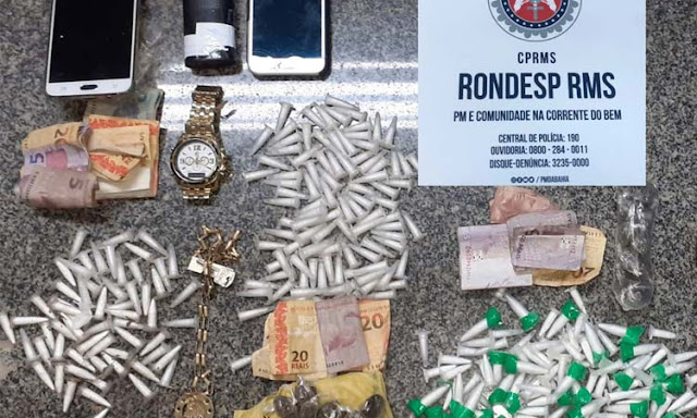 De acordo com a Secretaria de Segurança Pública da Bahia (SSP-BA), por volta das 17h15, os policiais localizaram com o trio, na quadra 6, Cia I, cerca de 280 porções da droga, 28 papelotes de maconha e R$ 208.