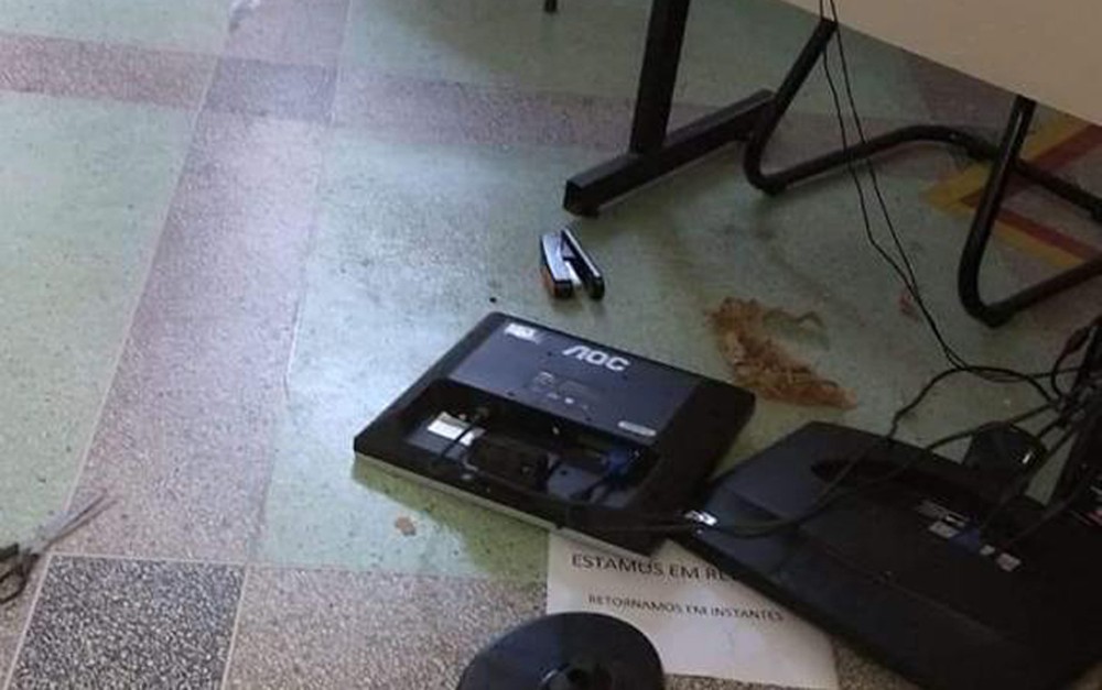 Diversos pontos da área interna da unidade foram atacados. Portas e vidraças foram quebradas, equipamentos de informática foram jogados no chão, dentre outras avarias.