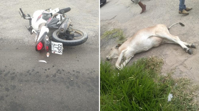 Um mototaxista identificado como Elielton conhecido por Japa, ficou ferido ao colidir a moto que conduzia contra uma novilha na rodovia BR-324, proxímo à antiga escola agrícola, em Jacobina.