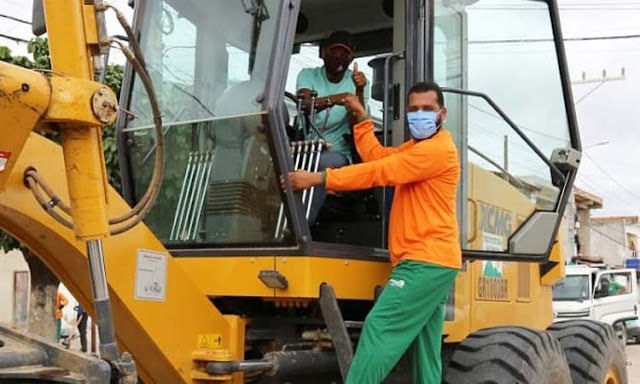 Na manhã desta quinta (7), o prefeito de Jacobina, Tiago Dias, vestido de gari, lançou o programa Prefeitura em Ação no distrito do Novo Paraíso. A ação contou com equipes das Secretarias de Trânsito e Transporte, Desenvolvimento Urbano, Infraestrutura, Meio Ambiente e Agricultura, que nessa primeira etapa fizeram um mutirão de limpeza, além de reparos na iluminação e calçamento, pinturas de faixa de pedestres e meio-fio, podas de árvores, e ações de conscientização da importância dos cuidados com o meio ambiente.