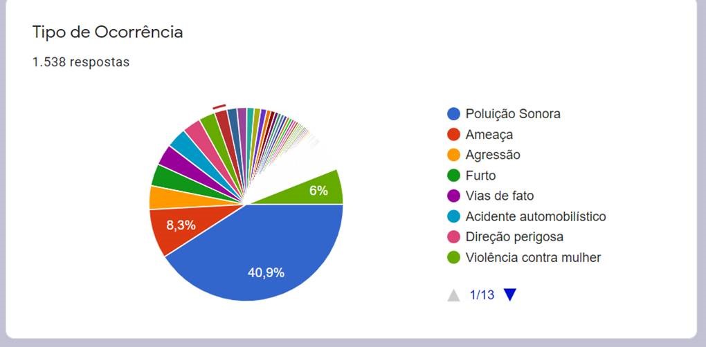 Um fato que ainda preocupa são os dados, ainda altos, de poluição sonora e perturbação do sossego alheio, que ocupa 40,9% das ocorrências destinada à população, mesmo com a apreensão de 22 aparelhos de som durante a pandemia, a poluição sonora não diminuiu e é tido como problema grave já que além de consumir recursos públicos inviabiliza possíveis ações preventivas em outros setores de Segurança Pública.