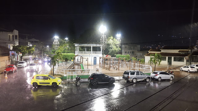 Depois de mais um dia quente, com termômetros registrando uma média de 32°C e sensação térmica de até 35°C, a chuva que cai na noite desta quarta-feira (13) em Jacobina faz reduzir a temperatura e traz alívio para os moradores.