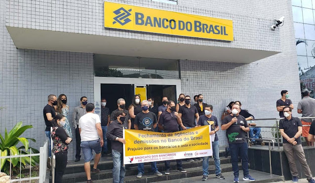 Jacobina: Bancários protestam contra demissões e fechamento de unidades do BB