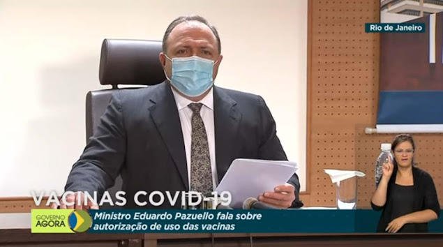 Por Robson Guedes - O ministro da Saúde Eduardo Pazuello concedeu uma entrevista neste domingo (17), para falar sobre a aprovação do uso emergencial de vacinas pela Agência Nacional de Vigilância Sanitária (Anvisa) e anunciar a vacinação contra a Covid-19 no país.