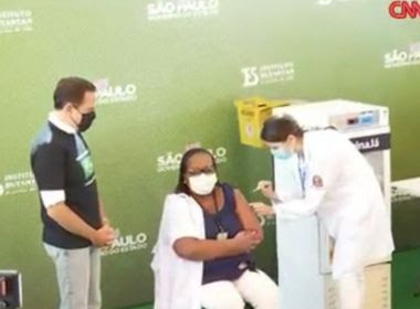 A enfermeira Mônicas Calazans, de 54 anos, foi a primeira brasileira a receber uma dose da vacina contra a Covid-19 Coronavac, neste domingo (17).
