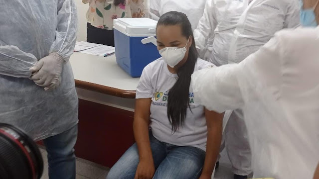 Uma técnica de enfermagem foi a primeira pessoa a receber a vacina em Jacobina. Foram disponibilizadas cerca de 3 mil doses da Coronavac para a região de Jacobina.
