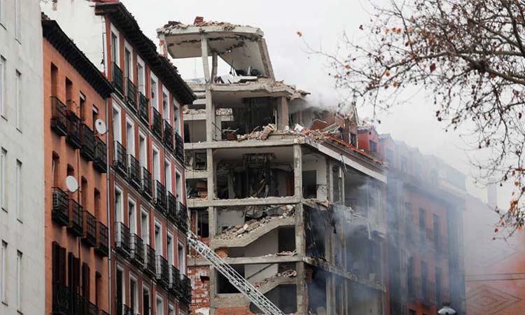 Um edifício localizado próximo ao monumento Puerta de Toledo ficou completamente destruído com o forte impacto. No prédio funciona uma escola católica e os destroços atingiram outros três prédios, sendo um deles um lar de idosos.