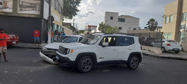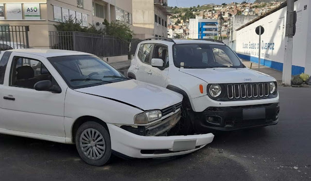 Uma colisão entre dois veículos, um Jeep e uma Saveiro, foi registrada na tarde desta quinta-feira (28) no cruzamento da Rua Artur Diniz Veloso com a Travessa Lomanto Júnior, no centro de Jacobina.
