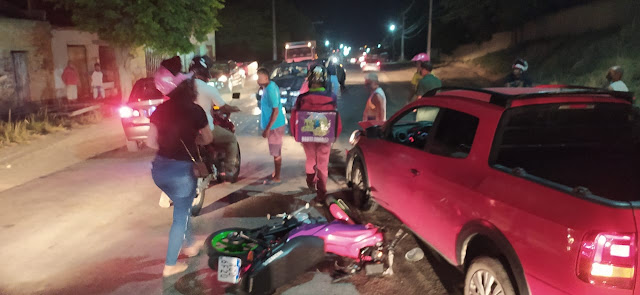 Um acidente envolvendo três veículos, uma picape, um automóvel e uma motocicleta, ocorrido na noite desta sexta-feira (29) na Avenida Nossa Senhora da Conceição, no bairro Ladeira Vermelha, em Jacobina, deixou uma pessoa ferida.