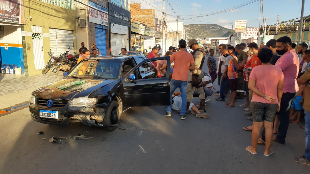 Uma colisão entre uma moto e um carro, ocorrida na tarde desta quarta-feira (3), na Avenida Castelo Branco, no bairro da Caeira, em Jacobina, deixou um motociclista ferido. Segundo informações apuradas pelo Jacobina Notícias no local, o motociclista seguia na via normalmente, porém muito próximo do carro da frente, cujo motorista precisou frear bruscamente.