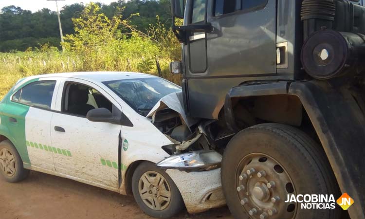 Carro da Prefeitura de Jacobina colide de frente com caçamba em Itaitu