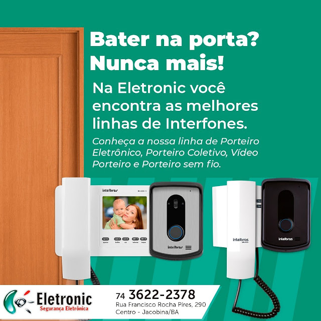 Em Jacobina, a Eletronic Segurança Eletrônica é a empresa especializada em sistemas de segurança, seja com portão automático, câmeras de monitoramento ou porteiro eletrônico. Fale com a equipe da Eletronic pelo telefone (74) 3622-2378, ou faça uma visita na loja, localizada na Rua Francisco Rocha Pires, n° 290, próximo ao SAC, no centro de Jacobina.