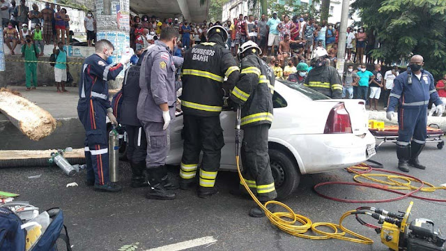 Neste sábado (27), uma palmeira imperial caiu em cima de um veículo, na cidade baixa, na região de Água de Meninos. O acidente deixou três pessoas presas nas ferragens. Três equipes de resgate do Corpo de Bombeiros conseguiram fazer o resgate de uma das vítimas e tentam retirar as outras duas.