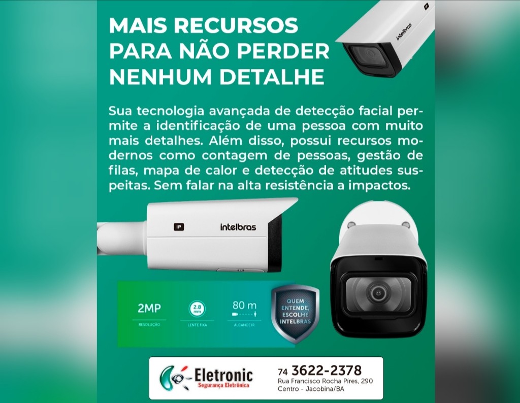 A Eletronic Segurança Eletrônica é uma empresa reconhecida em Jacobina e toda a região pela sua excelência na prestação de serviços residenciais e empresariais, no que se refere a melhor tecnologia para segurança de patrimônio.