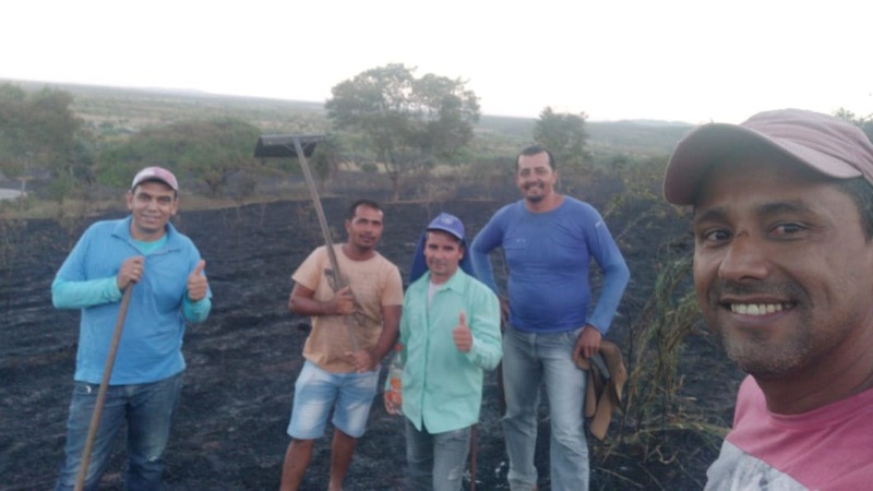 Voluntários da cidade de Serrolândia se deslocaram para a região da Palmeirinha, no município de Jacobina, para combater um incêndio de grandes proporções que consumia a vegetação seca da caatinga na tarde desta sexta-feira (12).