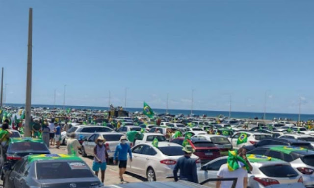 Manifestantes fizeram neste domingo (14) carreata a favor do presidente Jair Bolsonaro (sem partido) e contra o lockdown parcial em Salvador, que proíbe o funcionamento de atividades econômicas não essenciais.
