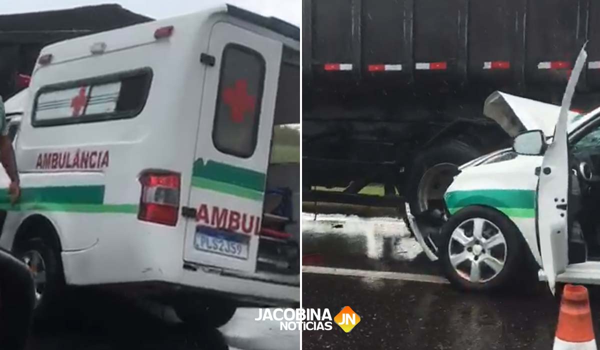 Uma ambulância da Prefeitura de Jacobina colidiu na traseira da uma caçamba que estava parada na BR-324, na tarde desta segunda-feira (15), próximo à cidade de Amélia Rodrigues, entre Feira de Santana e Salvador.