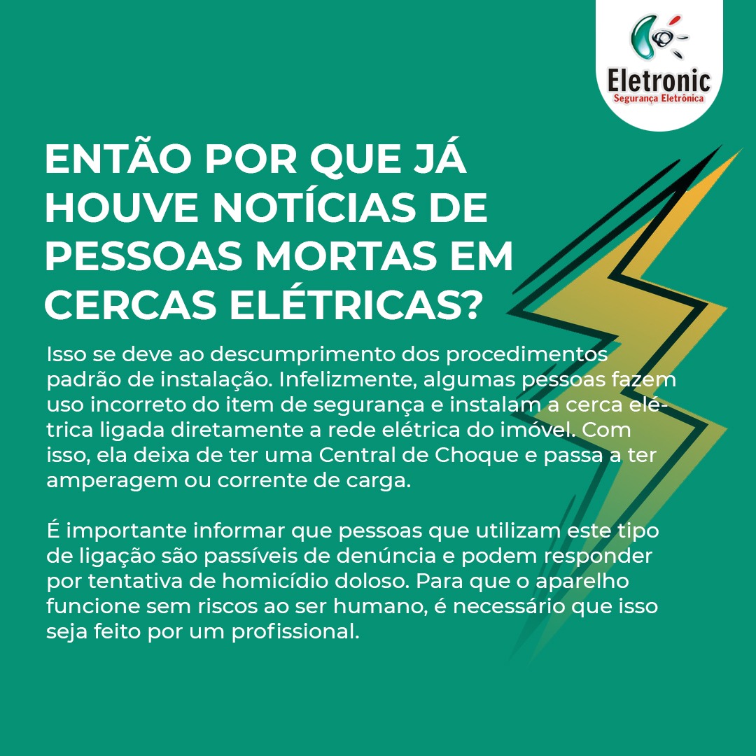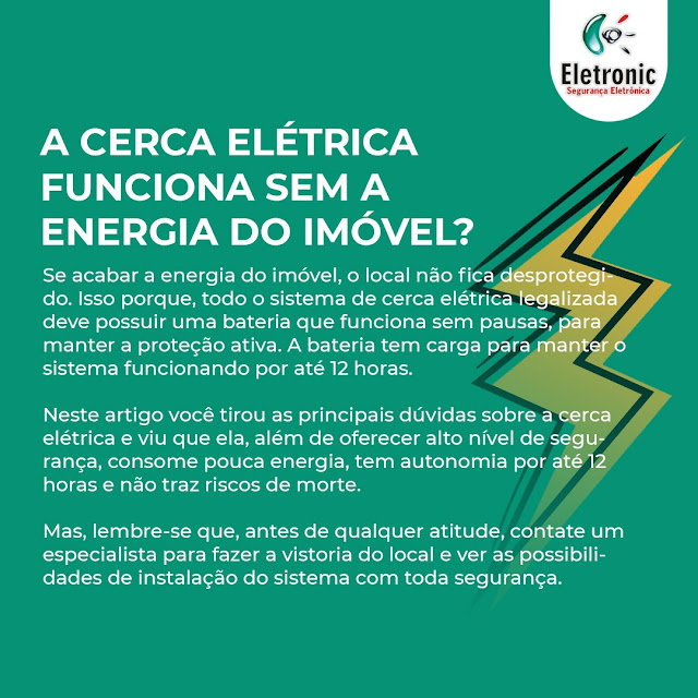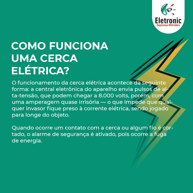 Você sabe toda a funcionalidade de uma cerca elétrica? a segurança que proporciona, consumo de energia, risco e voltagem? Se não, tire suas dúvidas: A Eletronic Segurança Eletrônica, situada à Rua Francisco Rocha Pires, 290, no centro de Jacobina, traz alguns pontos importantes que você precisa saber sobre o equipamento, se liga!