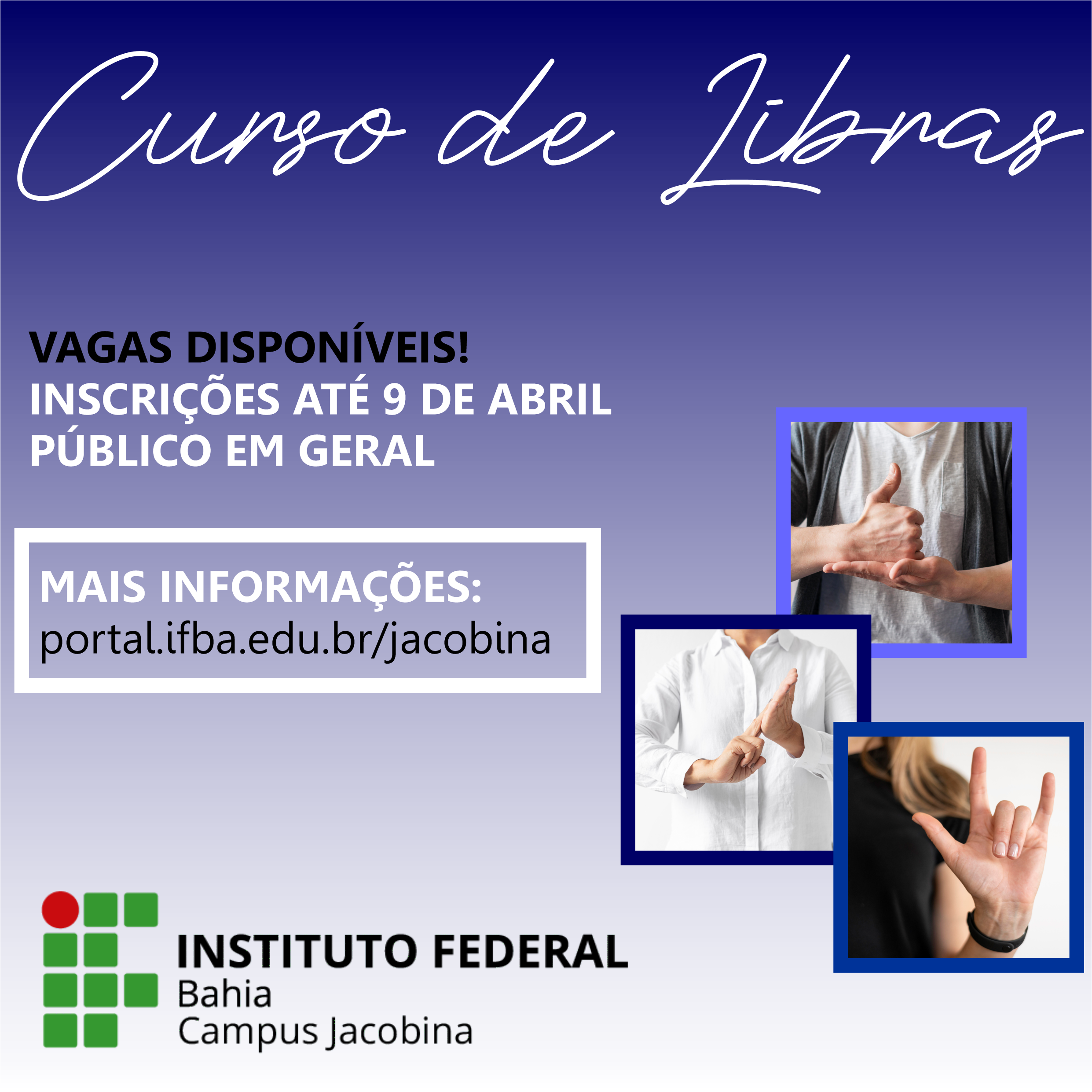 Ainda estão abertas as inscrições para a quinta e última fase do projeto Curso Básico de Libras, aprovado em edital de fluxo contínuo da Pró-Reitoria de Extensão do IFBA (Proex).