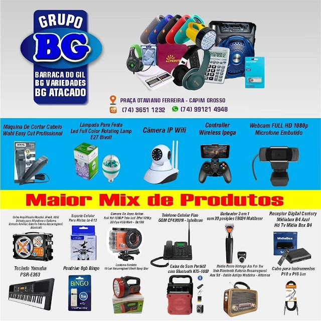 Na BG Variedades você vai encontrar fones de ouvido, headsets, mouses, teclados, pendrives, carregadores para celular, cabos de dados para celulares, lanternas, máquinas para cortar cabelo, barbeadores, roteadores e muito mais.
